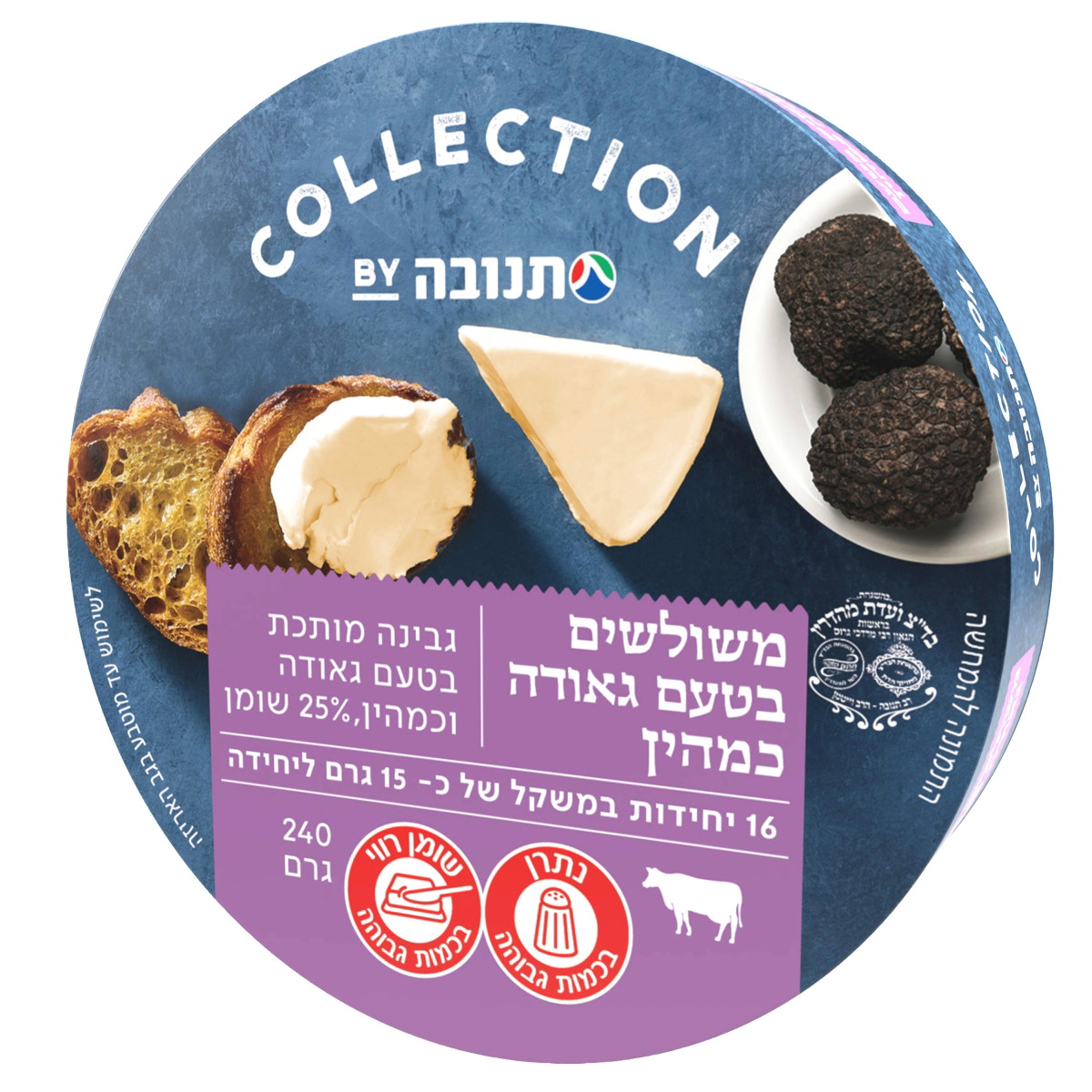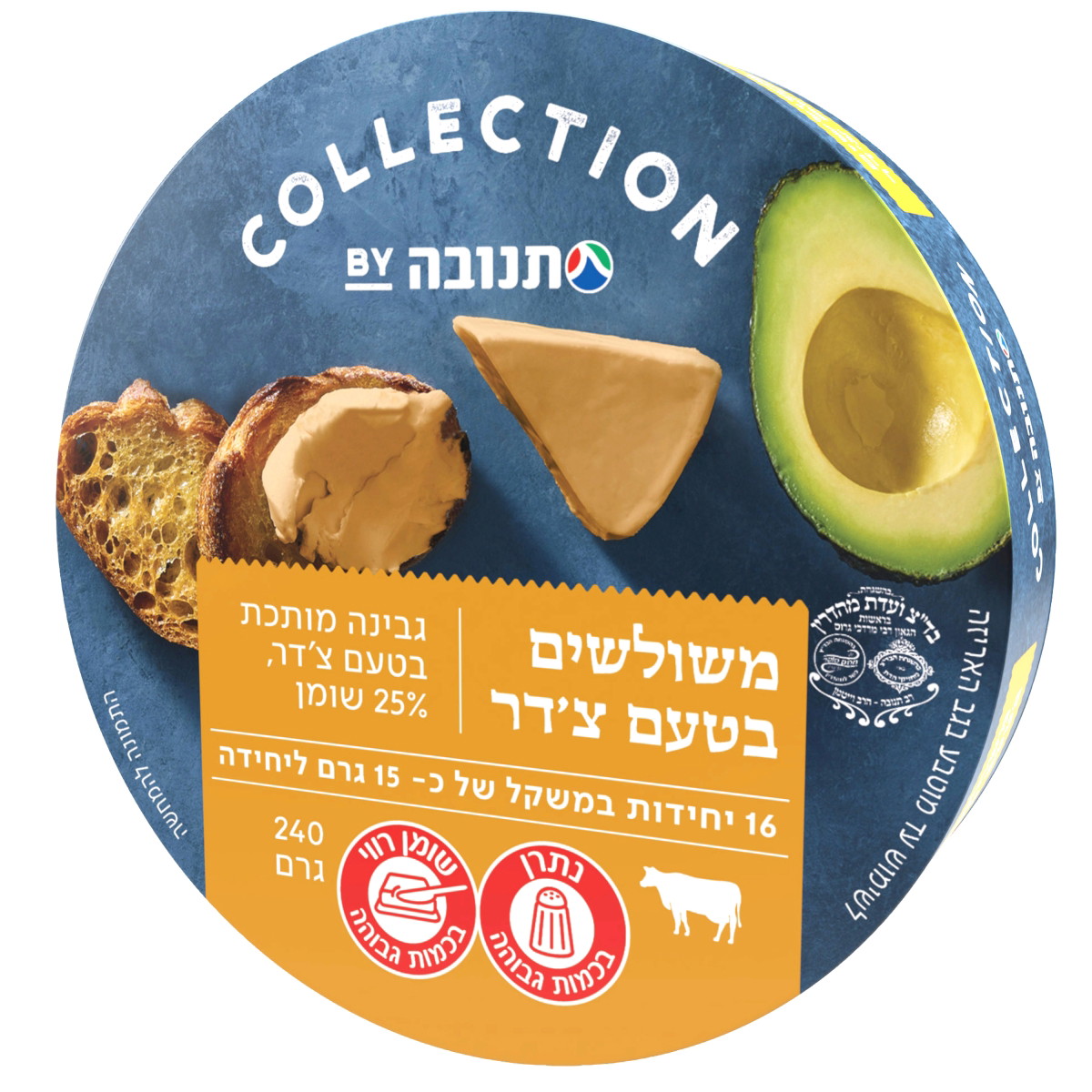 مثلثات بطعم الشيدر/الجاودة مع الكمأة – جبنة مذابة بطعم الشيدر مع %25 دهن تشمل 16 وحدة.