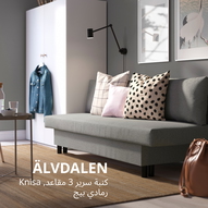 - عندما يتعلّق الأمر بالراحة والاستخدام، فإن أريكة ÄLVDALEN هي الخيار المثالي. خلال اليوم تكون أريكة ثلاثية المقاعد واسعة، وفي الليل تتحوّل إلى سرير مريح. مع تخزين مخفي تحت المقعد وتصميم يضيف الدفء والأناقة لأي غرفة، فهي مثالية لكل منزل.
