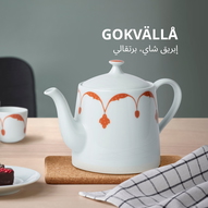 - وإذا كنتم لا تستطيعون الاستغناء عن فنجان الشاي في نهاية الوجبة، حتى في أيام الصيف الحارّة، لا تفوتوا الإبريق المصمم من سلسلة GOKVÄLLÅ، الذي سيضفي نفحة ريفية وجوًا هادئًا على أوقاتكم الحرة.