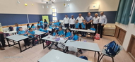 افتتحت مدارس عبلين اليوم الثلاثاء 3-9-2024 أبوبها لآلاف الطلاب والطالبات الذين توافدوا إلى المدارس والروضات والبساتين محملين بالفرح والأمل.وشارك رئيس مجلس عبلين المحلي السيد شريف حيدر فرحة الطلاب والمديرين والمعلمين بهذا اليوم حيث قام بزيارة كل المدارس الرسمية مع وفد من المجلس المحلي الذي ضم القائم بأعمال الرئيس السيد ثائر سليم والسيد يوسف عزام نائب الرئيس والسيد فواز حاج مستشار الرئيس لشؤون التعليم والدكتور خالد الشيخ احمد مدير قسم المعارف والسيد شافع خوري من قسم المعارف. وكان من المهم جدًا للوفد من المجلس المحلي الاطمئنان على نجاح اليوم الاول من السنة الدراسية ومتابعة جميع التحديثات والتطويرات التي كانت خلال العطلة الصفية والاستماع لمديري المدارس والتحديات التي يمكن ان تواجههم خلال السنة.