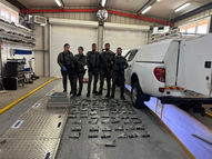 خلال التفتيش الذي قامت به القوات داخل سيارتهما، تم ضبط 101 مسدس من طراز جلوك مع امشاط ذخيرة التي، حاولوا تهريبها إلى داخل الدولة