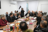 ومن ثم التقى رئيس الدولة بأعضاء المجلس المحلي طوبا الزنغرية والسيد حاتم شبلي رئيس مجلس محلي شبلي ام الغنم ووجهاء من البلدة في حوار مفتوح حول الصعوبات والتحديات التي يواجهها سكان طوبا الزنغرية والقرى البدوية في اعقاب الحرب.