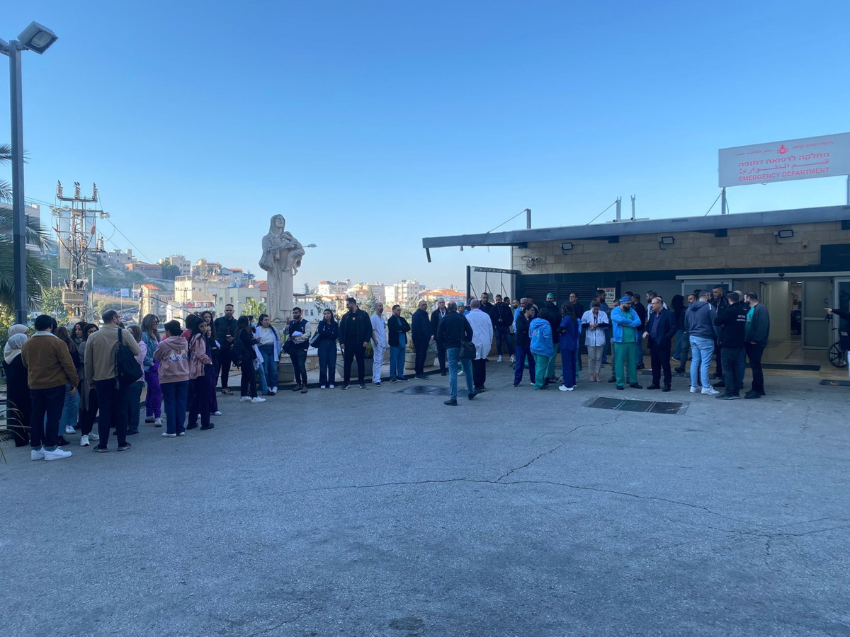 فيديو وصور - وقفه احتجاجية في مستشفى العائلة المقدسة تنديدًا بمقتل الطبيب عبدلله عوض واستفحال العنف في المجتمع العربي