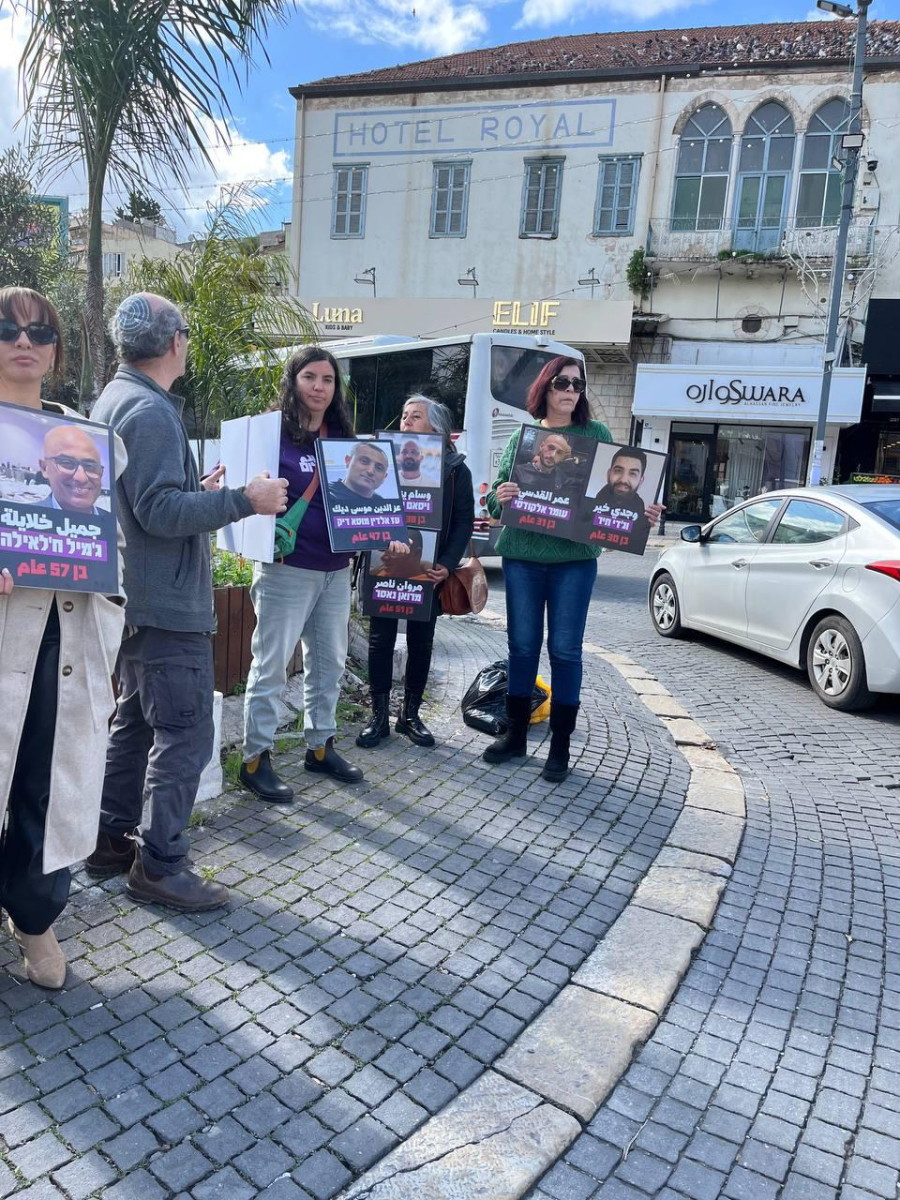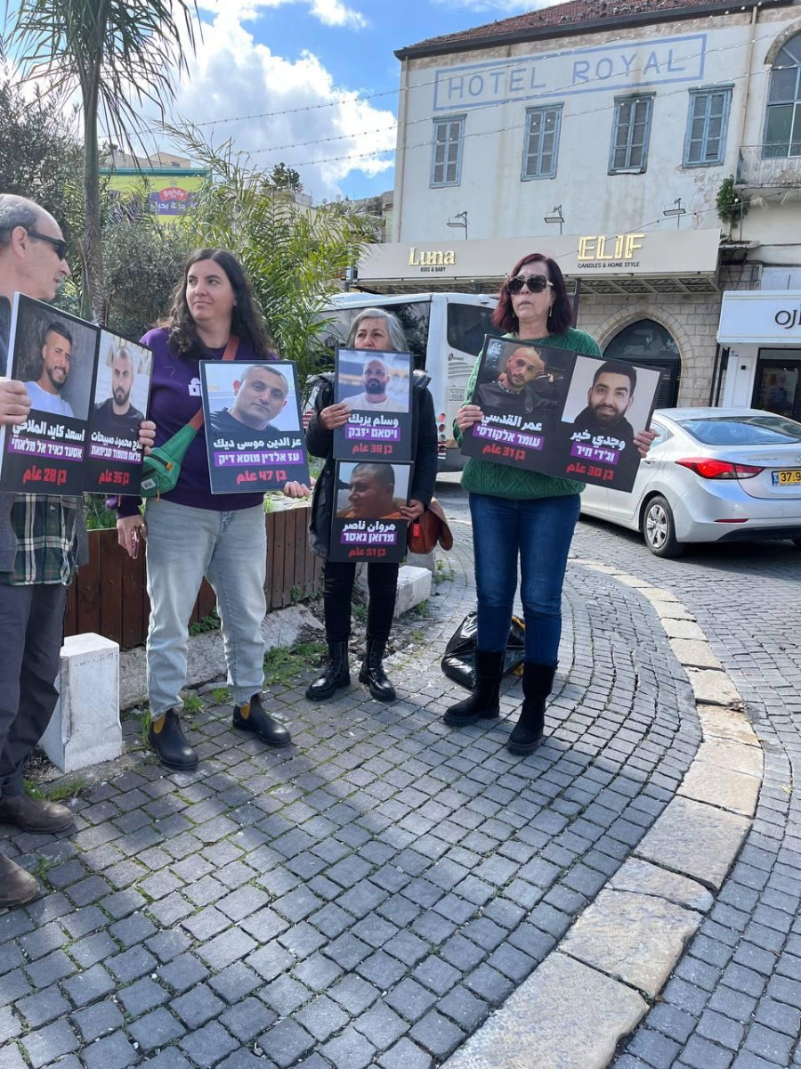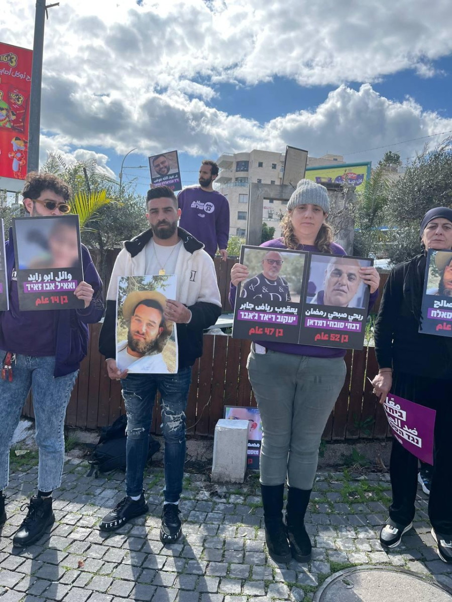 ناشطو الحراك، وبمشاركة عدد من افراد عائلات ضحايا جرائم القتل، رفعوا صور الضحايا مع أسمائهم وتفاصيلهم، ووقفوا على دوار المدينة (شهاب الدين) وطالبوا الشرطة والدولة بتحمل المسؤولية والتعامل بشكل جدي ومهني مع آفة الاجرام المنظم التي تضرب المجتمع العربي وتتفاقم كل عام أكثر من الذي سبقه.