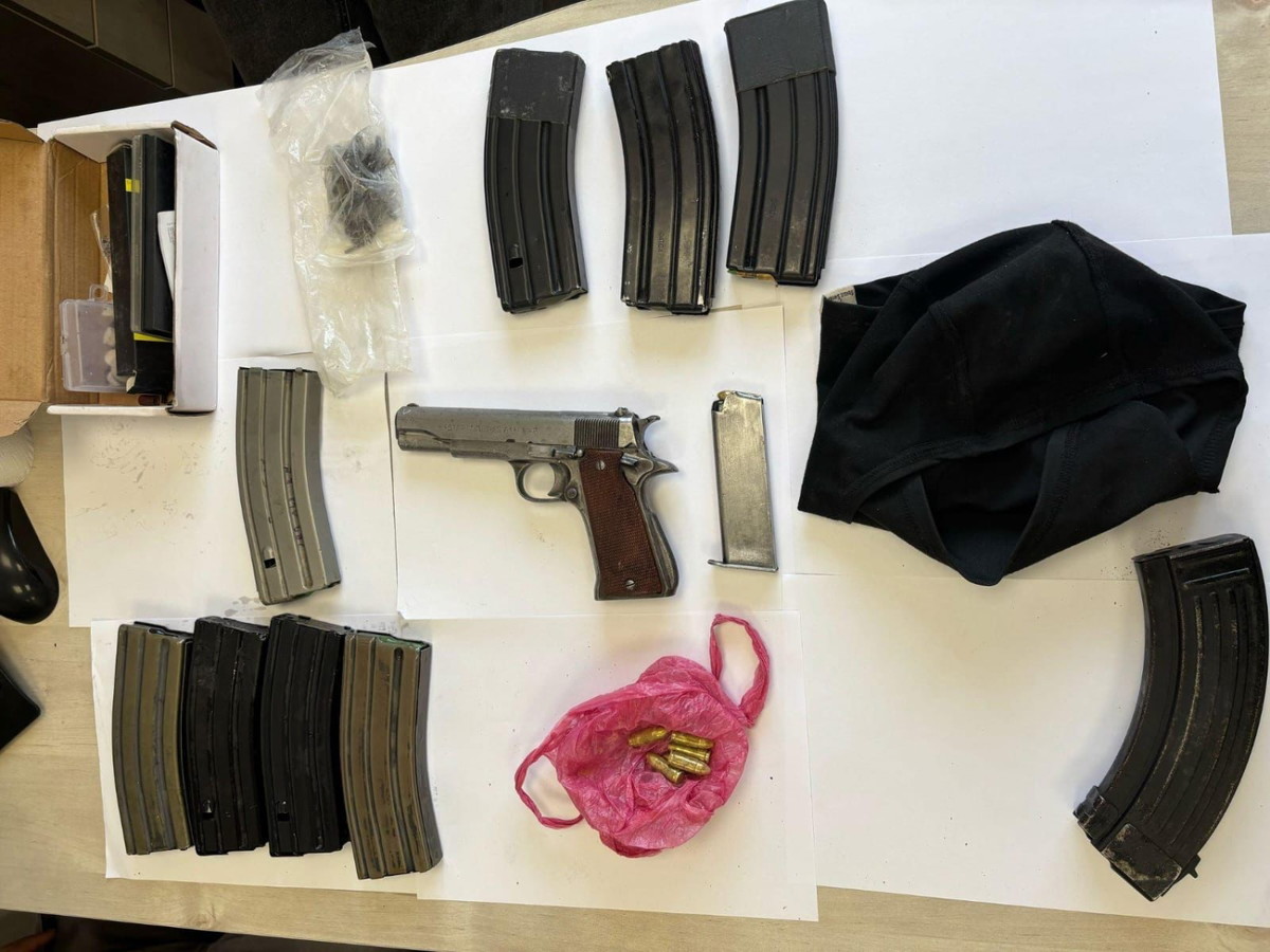 "في إطار جهودها الحازمة لمكافحة مسببي الجريمة والعنف في المجتمع العربي، قامت شرطة مديرية النقب في لواء الجنوب، بالتعاون مع محاربي الحرس الوطني في الجنوب، خلال نشاط ميداني مكثف، بضبط أسلحة متنوعة تشمل سلاح M16، رشاش فريد من نوعه عيار 7.62، 5 مسدسات من أنواع مختلفة، مخازن وكمية كبيرة من الذخيرة".