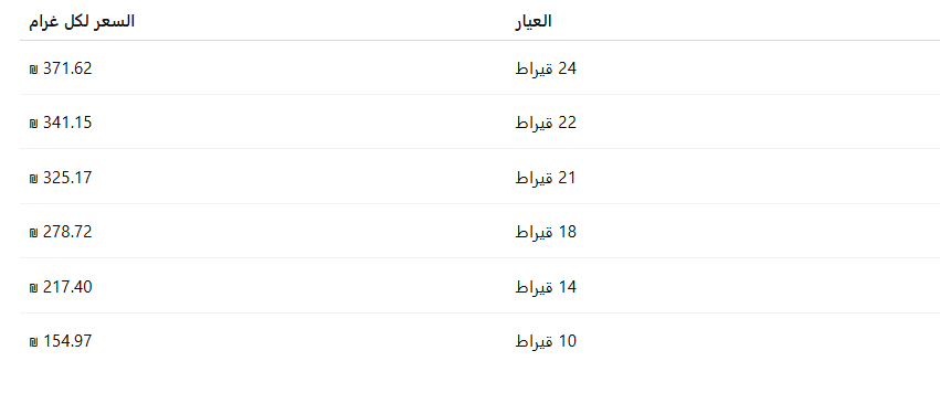 أسعار الذهب بالشاقل الإسرائيليّ، لليوم الاثنين الموافق 2.6.2025: