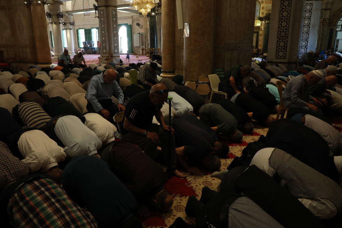 وانتشر المصلون القادمون من القدس وأراضي الـ48 والضفة الغربية في رحاب الأقصى، للمشاركة في الاحتفال الذي دعت إليه دائرة الأوقاف الإسلامية بالقدس .