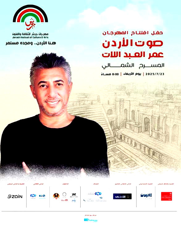 إختارت إدارة "مهرجان جرش للثقافة والفنون"، "صوت الأردن" الفنان عمر العبداللات، ليكون نجم حفل افتتاح دورة المهرجان التاسعة والثلاثين، وذلك يوم الأربعاء 23/7/2025، والذي يقام هذا العام من تحت شعار: "هنا الأردن .. ومجده مستمر".