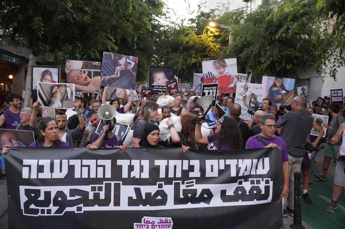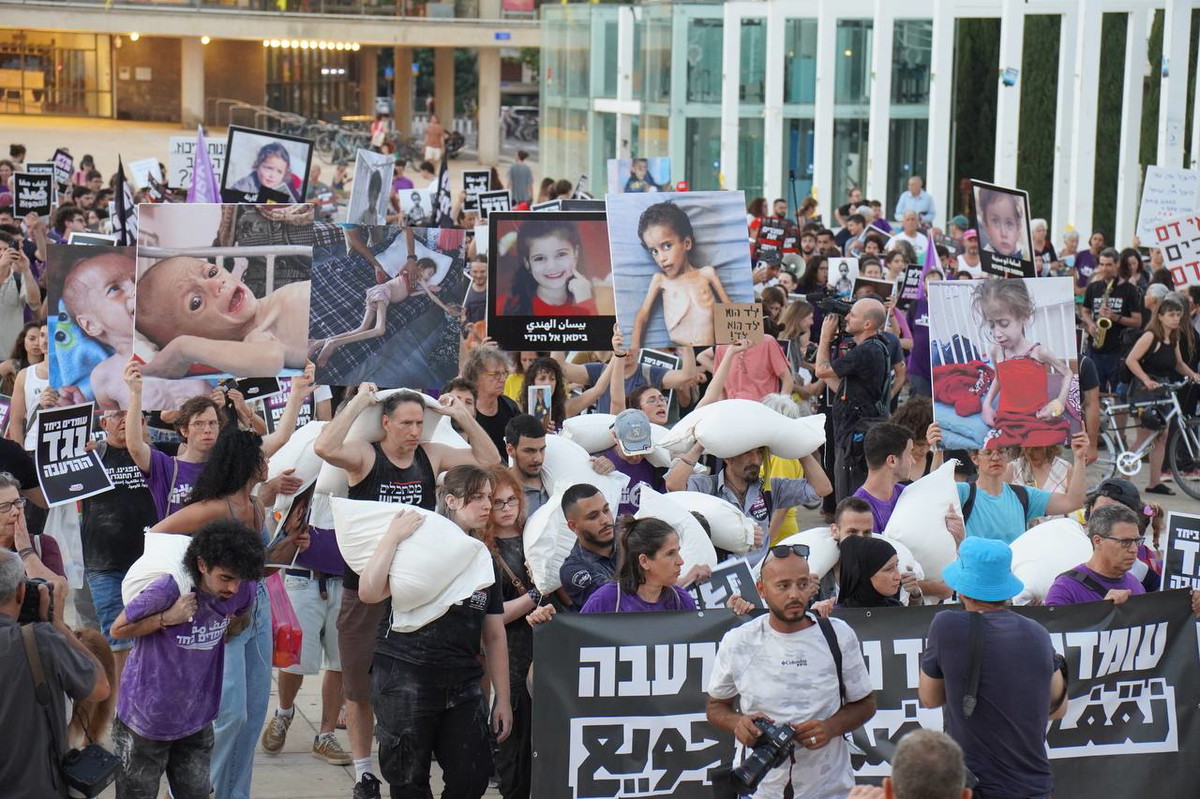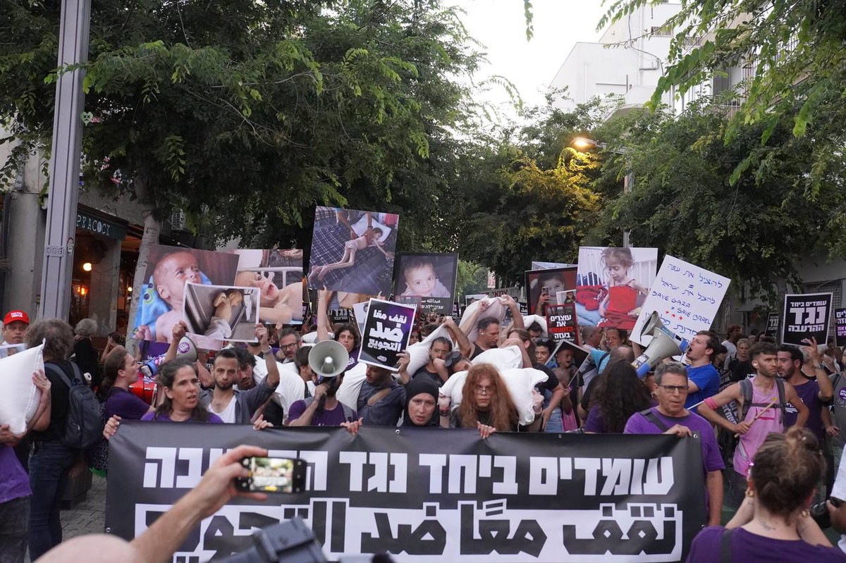 المئات شاركوا في المسيرة التي انطلقت من ميدان هبيما باتجاه منطقة الكرياه، ورفعوا صور أطفال غزة الذين ينهشهم الجوع، وصدحت الهتافات في شوارع تل أبيب تطالب بوقف الحرب ورفع الحصار.