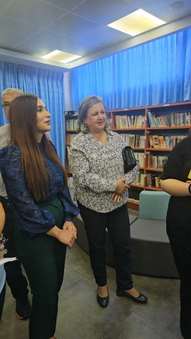 بعد ذلك انتقل الوفد إلى مكتبة المدرسة، حيث تم تنظيم ورشة قراءة تفاعلية أبرزت