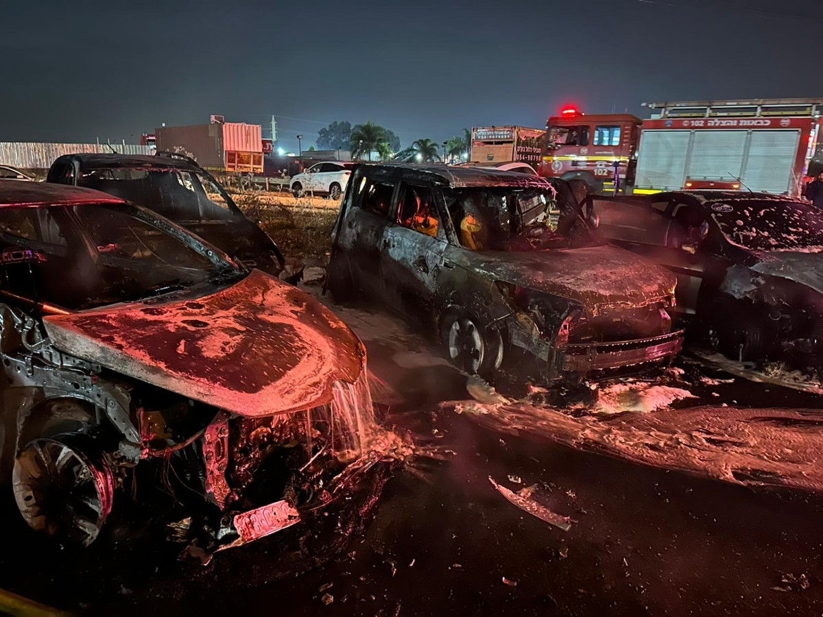 اشتعال 4 سيارات في شارع המוסכים وتم إخماد النيران باستخدام المياه ومواد خاصة، ومنعوا انتشار الحريق إلى سيارات إضافية قريبة، تسبب الحريق بأضرار كبيرة للسيارات وفي شارع 721 عُثر على سيارة مشتعلة بالكامل قام رجال الإطفاء بمدّ خطوط مياه ومواد خاصة لإخماد النيران وتقليل خطر انتشارها نحو الأشجار والشجيرات المحيطة.