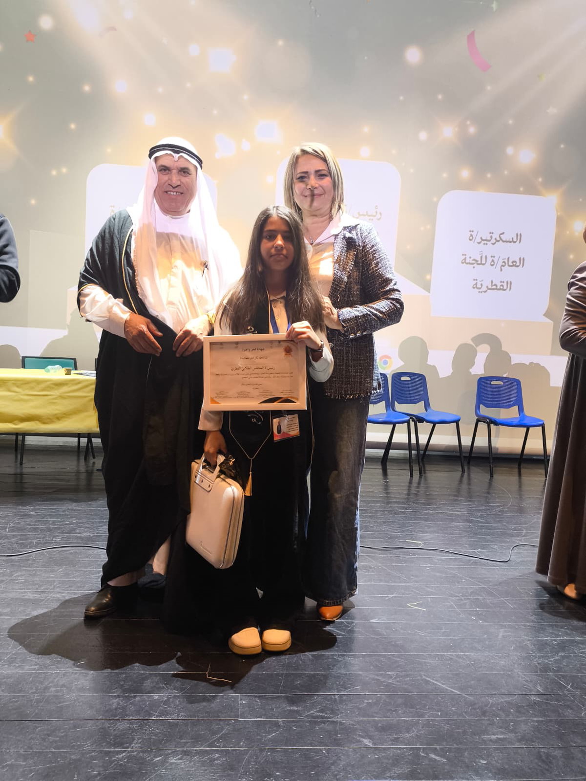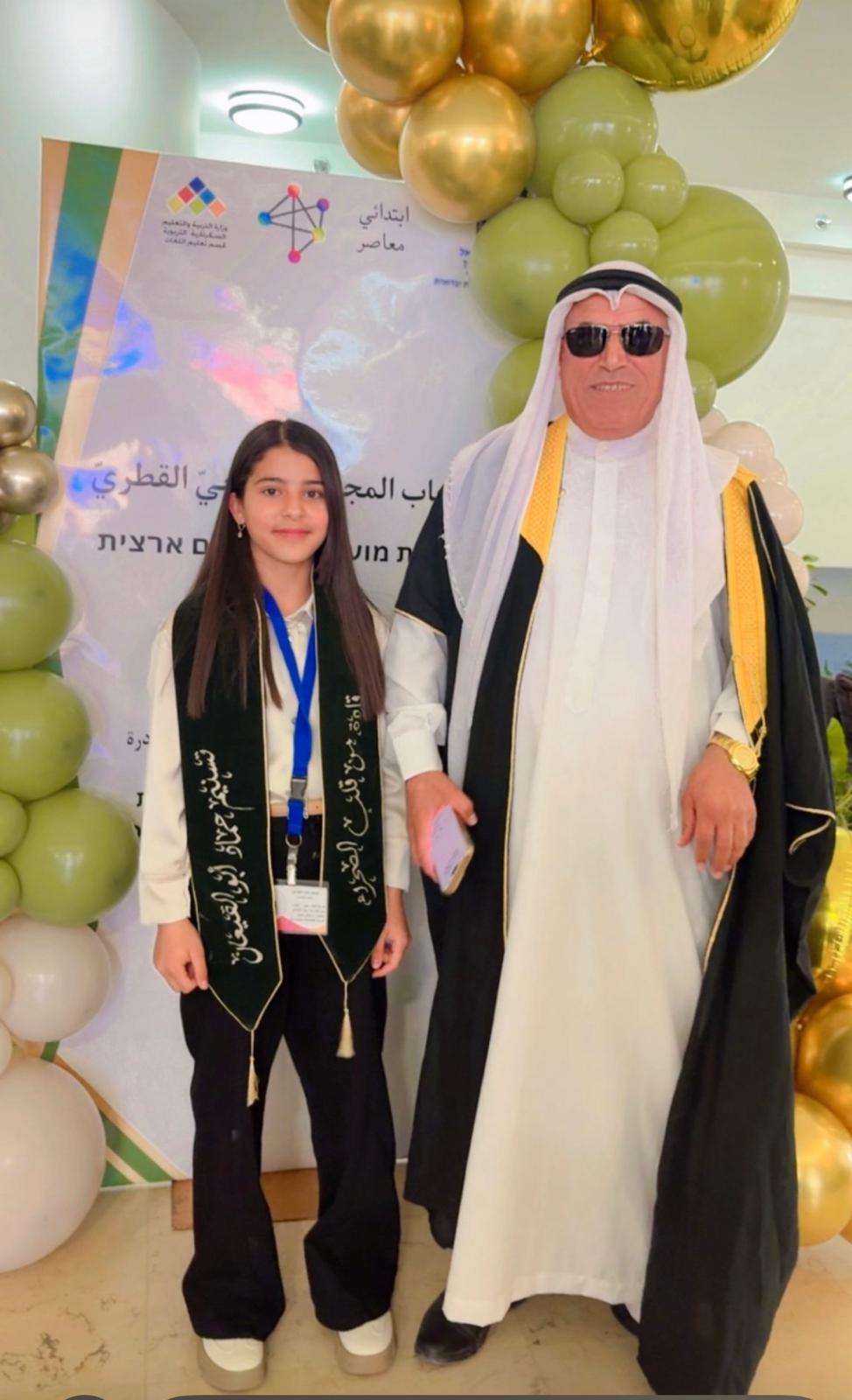 وجاء في البيان: "كما تتقدّم المدرسة بجزيل الشكر والتقدير لمدير المدرسة حماد القواعين، الذي كان الداعم الأول للطالبة، ووفّر لها البيئة التعليمية المحفّزة، وفتح أمامها المجال للتعبير عن قدراتها والمشاركة في مختلف الفعاليات المدرسية والقطرية. إن دعمه وتشجيعه المستمرين كانا ركيزة أساسية في وصول الطالبة إلى هذا المستوى الرفيع".