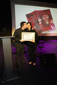وتم إهداء السيّدة نوال (أم وطن) لوحة خاصة كتبها الخطاط أحمد زعبي، من إحدى قصائد "الكولاج". كما قدّم وطن القاسم شهادات شكر وتقدير لعدد من الشخصيات والمؤسسات الوفية لذكرى الشاعر. واختتمت الأمسية بأغنية "منتصب القامة أمشي".