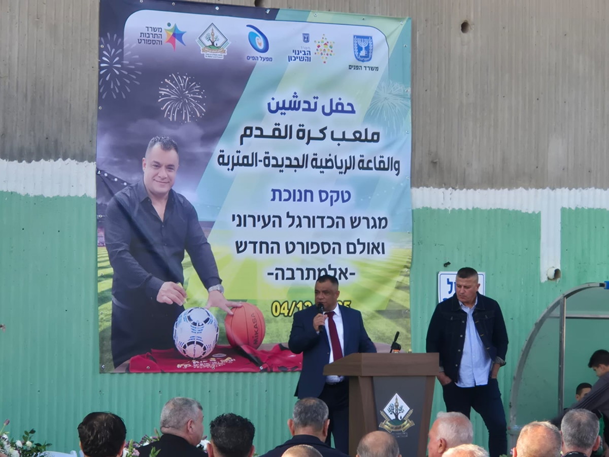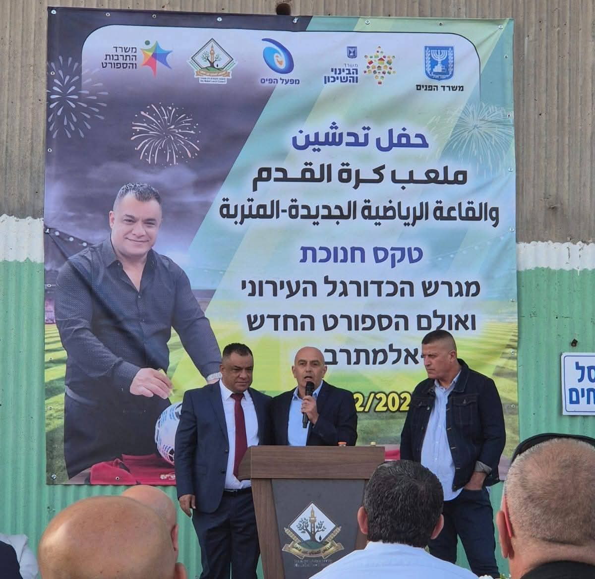 وأردف الرئيس "أبو هاني" في كلمته أمام الحضور بعرض مراحل المشروعين، والموارد الحكومية التي حصل عليها المجلس المحلي والتي من شأنها ساهمت في بناء الملعب والقاعة الرياضية من بينهم وزارة الرياضة والثقافة الممثلة بالمفتش "غازي نجيدات"، وزارة الداخلية الممثل ضابط لواء الشمال "صالح خطبا" ، وزارة البناء والأسكان الممثل بمدير قسم الأقليات " أمين أبو حية"، مفعال هبايس الممثل بالمسؤولة "עירית ענבי".