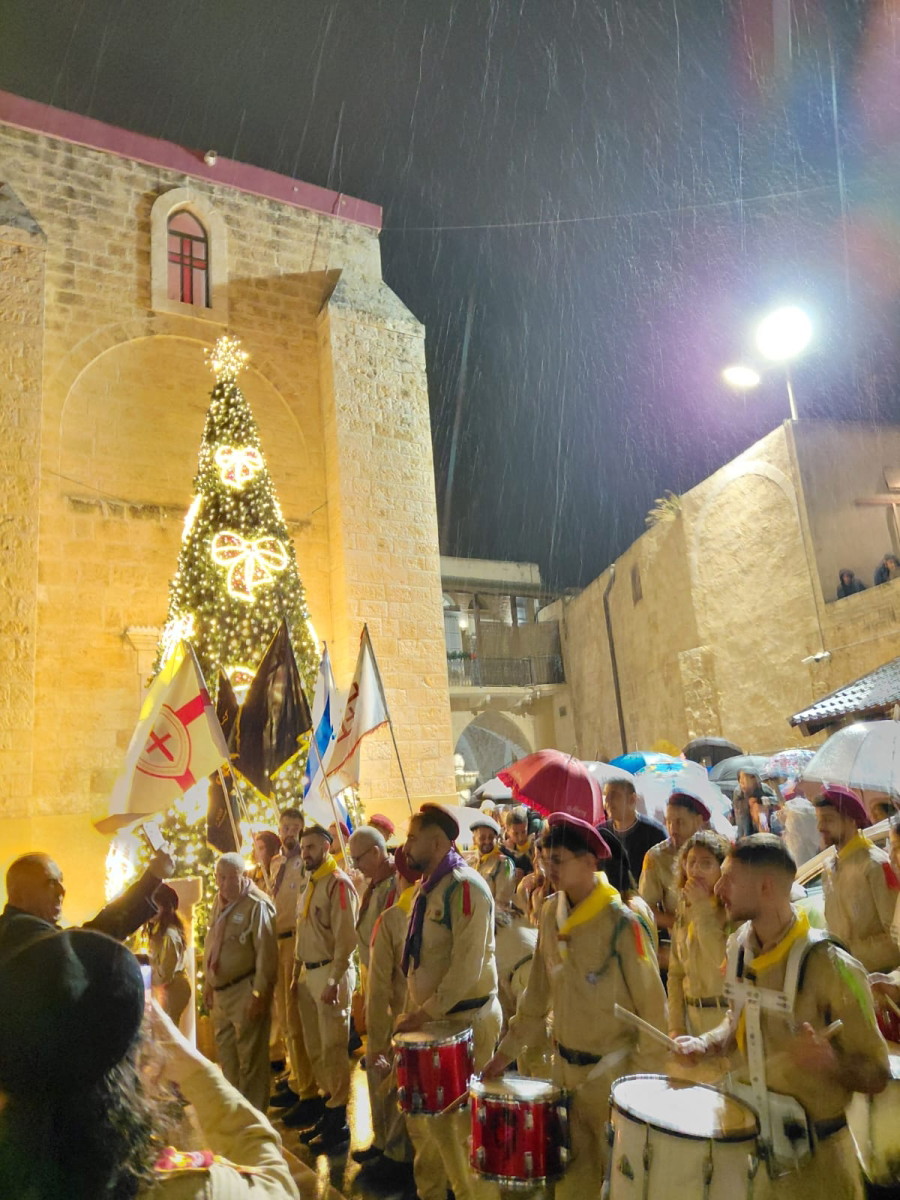 انطلقت المسيرة من مقر الكشاف المسيحي الذي سار أعضاؤها في مقدمة المسيرة الى ساحة كنيسة القديس يوسف للاتين وهناك تم إضاءة شجرة الرعية، وبعدها إلى كنيسة القديسين بطرس وبولس حيث اضيئت شجرة الكنيسة، وبعدها إلى كنيسة القديسين هيلانة وقسطنطين فالكنيسة الانجيلية وانتهاء في ساحة باب الدير.