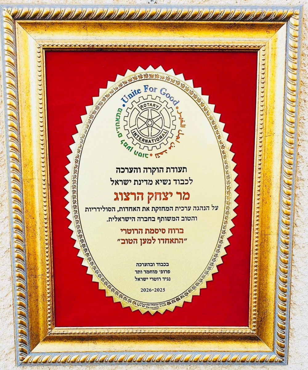 وهنا تبيّن التشابه الكبير – تطلعات العميد لتعزيز الروابط بين الطبقات والقطاعات المختلفة في المجتمع الإسرائيلي تتردد تقريباً كلمة بكلمة مع رؤية رئيس الدولة يتسحاق هرتسوغ. كلاهما يحلمان بمجتمع تتحول فيه خطوط الانقسام إلى جسور تفاهم خاصة وعميد روتاري إسرائيل عندما تولى منصبه في بداية شهر تموز 2025، كان قد حدد لنفسه هدفاً واضحاً: تقريب القلوب بين أبناء الطوائف المختلفة وإعادة النسيج الاجتماعي في المجتمع الإسرائيلي، مع رسم مسار عمل لرأب الصدع وفي مقر رئاسة الدولة وجد مؤسسة تشاركه هذا الحلم السامي ذاته.