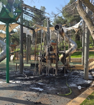 قال الناطق بلسان الشرطة: "صباح اليوم، قرابة الساعة 06:50، عمل أفراد الشرطة في لواء القدس إلى جانب طواقم الإطفاء والإنقاذ داخل حديقة ساكر، في أعقاب اندلاع حريق في مجمّع ألعاب الأطفال. وقد تم إخماد الحريق دون وقوع إصابات، إلا أنّ أضرارًا جسيمة لحقت بالمكان".