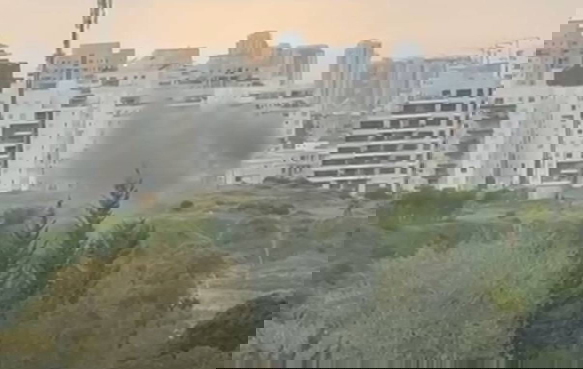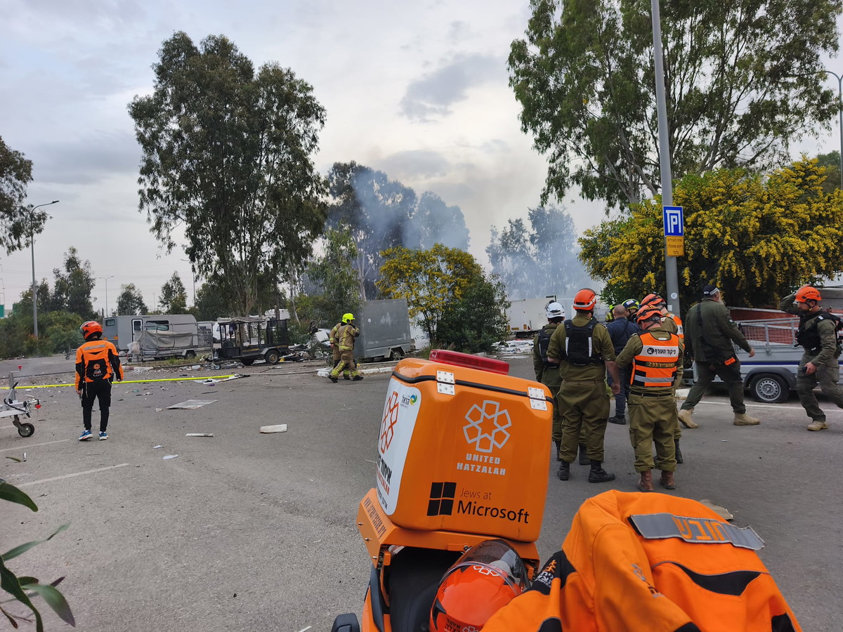 ووصل بيان صادر عن مكتب كايد ظاهر الناطق الرسمي للاعلام العربي في سلطة الإطفاء والإنقاذ جاء فيه: "تعمل 7 طواقم إطفاء وإنقاذ على إخماد حريق والبحث عن عالقين في موقع سقوط شظايا صاروخية".