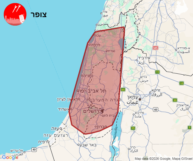 دوت صفارات الإنذار في مناطق عدة في البلاد، منها منطقة المركز والشمال، عقب رصد إطلاق عدة رشقات صاروخية من إيران. وفي وقت لاحق دوت صفاارت الإنذار في القدس ومحيطها عقب رشقة صاروخية إيرانية.