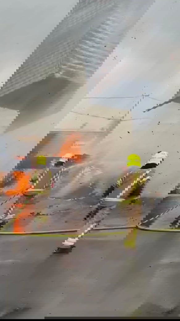 واستمر البيان: "خلال الإخلاء اشتعلت النيران في آلية هندسية كانت تعمل في الموقع وقد تضررت إلا أنه تم إخمادها بسرعة من قبل الطواقم دون وقوع إصابات. الحريق تحت السيطرة، وتواصل طواقم الإطفاء في هذه الأثناء الإخماد".