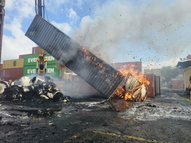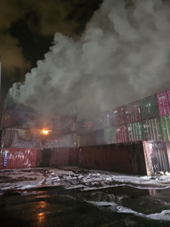 وتابع البيان: اندلع الحريق في مركز تجمع الحاويات وامتد إلى ما لا يقل عن 15 حاوية وتعمل طواقم هندسية في المكان على إخلاء الحاويات لإتاحة وصول مباشر لرجال الإطفاء إلى بؤر النيران ومواصلة أعمال الإخماد".