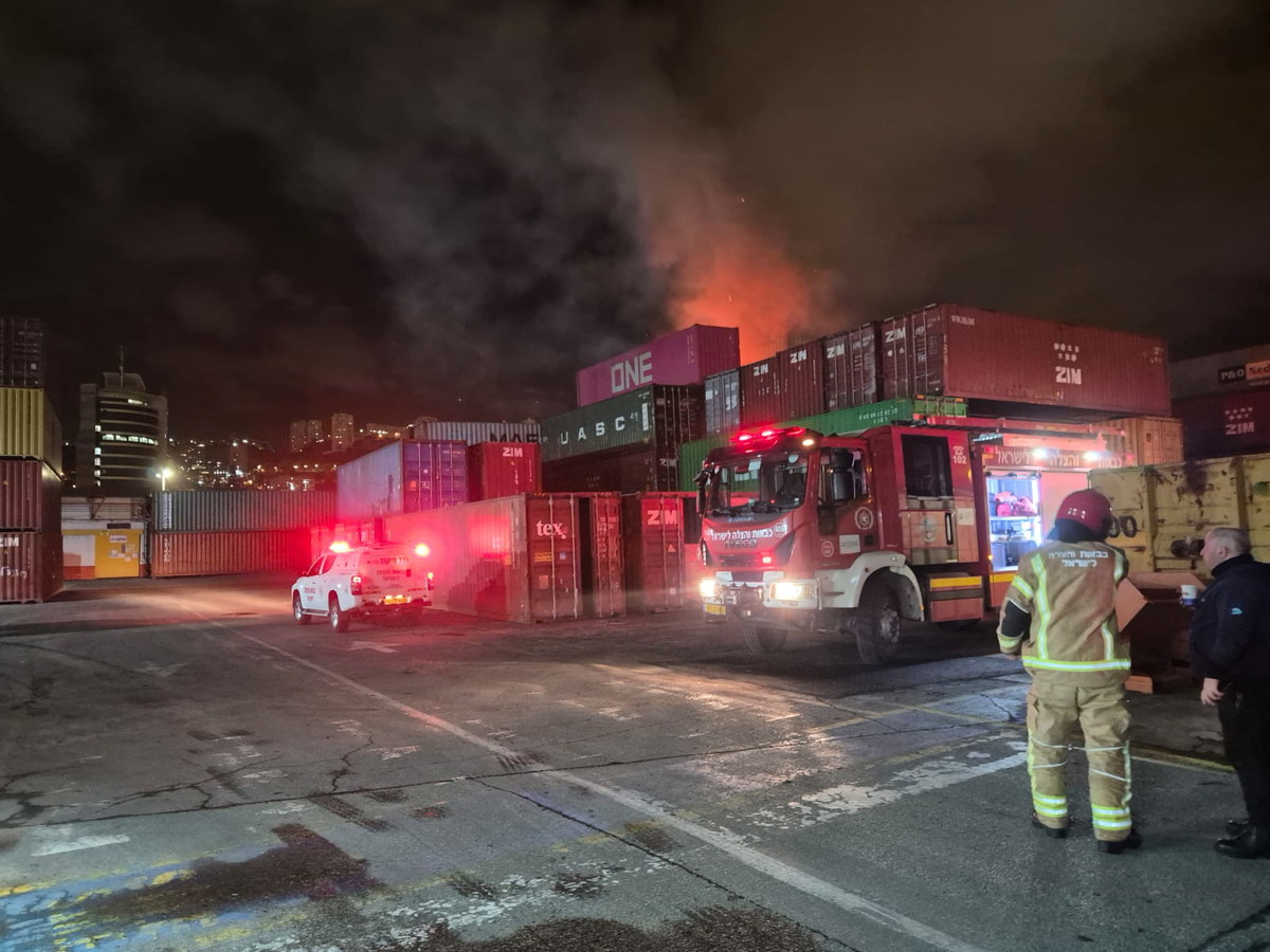حيفا: اندلاع حريق واسع في ساحة تخزين حاويات إثر سقوط شظايا صاروخية