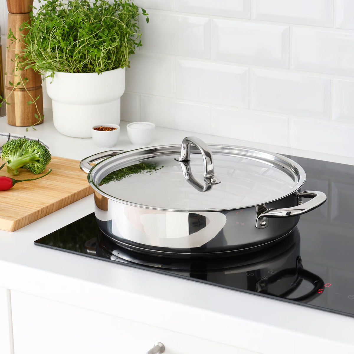 مقلاة سوتيه IKEA 365+ تتيح الطهي بسرعة وعلى حرارة عالية، ويمكن تقديم الطعام مباشرة منها إلى الطاولة. السعر 150 شيكل