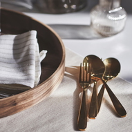 طقم أدوات مائدة TILLAGD مكوّن من 24 قطعة، يتميّز بلون نحاسي جريء يضيف لمسة مميزة لتصميم الطاولة. السعر 250 شيكل
