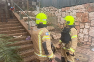وتعمل طواقم الإطفاء والإنقاذ على تمشيط منطقة سكنية بعد سقوط شظايا صاروخية، حيث تتعامل أيضًا مع تسريب غاز ناجم عن إصابة أسطوانات الغاز جراء الشظايا في المكان.