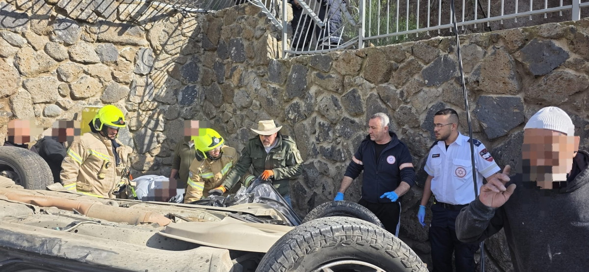 وكانت الطزاقم الطبية قد اعلنت انها تقوم بعملية إنقاذ في منطقة بركة رام في الجولان وذلك إثر انقلاب سيارة وعند وصول الطواقم إلى المكان تم رصد سيارة مقلوبة وبداخلها عالقان.