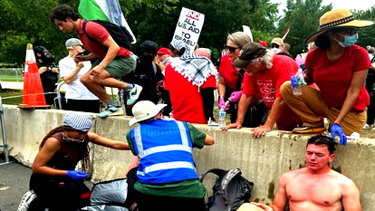 وبينما كان نتنياهو يستعرض "أبطاله" في الحرب على غزة، بما في ذلك جنود الجيش في خطابه الذي قاطعه نحو 80 نائبا وسيناتورا ديمقراطيا، اعتقلت شرطة الكونغرس أفراد من عائلات 3 أسرى إسرائيليين في قطاع غزة، وذلك خلال تظاهرهم ضد نتنياهو أمام مبنى الكابيتول.